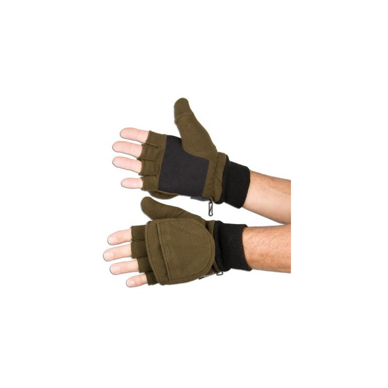 Renfort cuir - mitaines polaire kaki Thinsulate