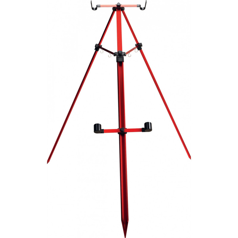 Une fois déployé, ce grand trépied à structure alu épaisse assure une excellente stabilité même à grande hauteur et par coup de vent. Des attaches aluminium permettent de fixer les montages en attente. Les bras latéraux en partie basse comme en partie haute sont amovibles du trépied pour un encombrement réduit. Plié, ce trépied de surfcasting rentre dans notre fourreau à cannes FO257312.