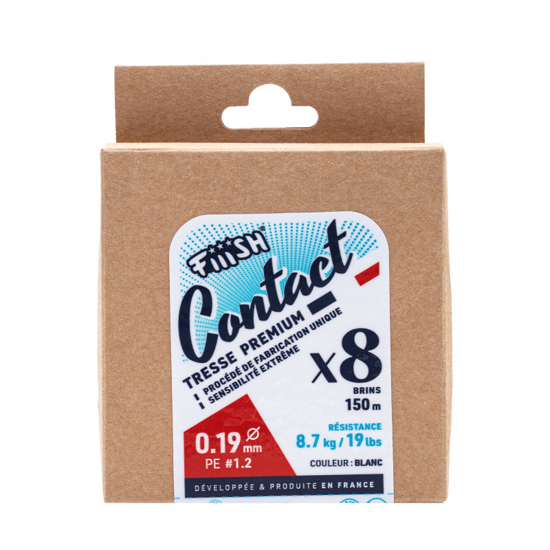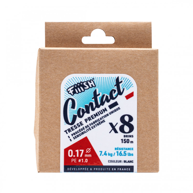 Tressée en 8 brins à partir de fils PEUHD Dyneema, le profil de la tresse CONTACT est parfaitement rond et lisse, idéal pour des lancers longue distance, une glisse optimale lors du passage dans les anneaux et une pêche précise, que ce soit en eau douce ou en mer.